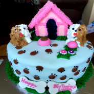 Lovely two dogs house cake made with traditional cake and sweet fondant.
