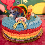 Pony party cake made with traditional cake and dry fruit. Covered with fondant and decorared with Italian meringue or butter cream.