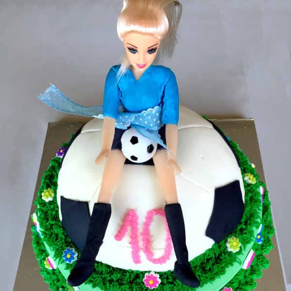 Soccer girl player made with traditional cake and covered with sweet fondant.