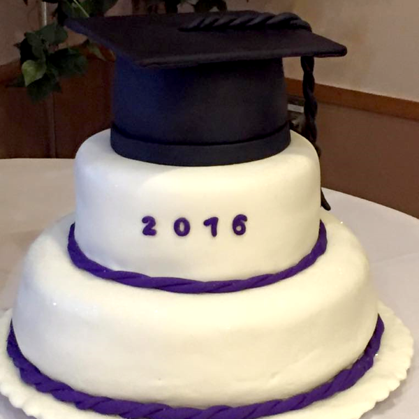 Graduation cake made with traditional fruit cake and covered with sweet fondant.